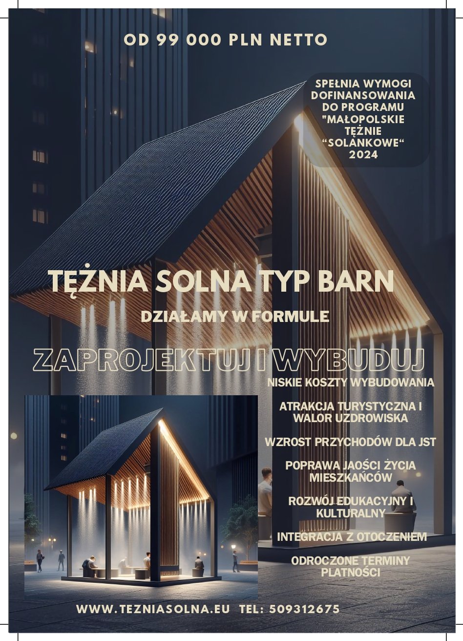 System "Zaprojektuj i Wybuduj" to gwarancja kompleksowej obsługi od pomysłu do gotowego produktu. Inwestując w nasze tężnie solankowe, inwestujesz w przyszłość zdrowia, rozwoju społeczności i atrakcyjności miasta dla mieszkańców oraz odwiedzających. Razem tworzymy miejsce, które nie tylko przyciąga uwagę swoim unikalnym charakterem, ale również dba o dobrostan i zdrowie wszystkich.